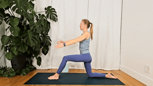 Tip: Finding the right distance between your back knee and front foot can take some experimenting. If your front knee easily goes further than your ankle, try stepping your foot further away. On the flip side, if you aren’t able to bring your knee in line with your ankle, try stepping closer until you can.