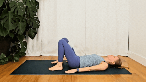 - Press hips up into a bridge