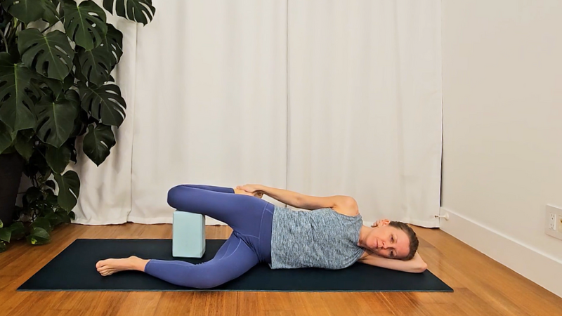 - Optional: Rest your knee on a yoga block for a deeper, more relaxed stretch